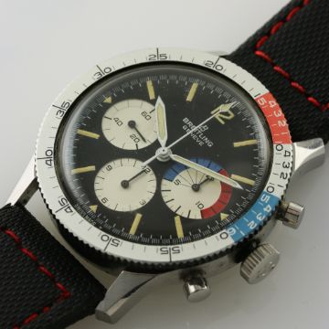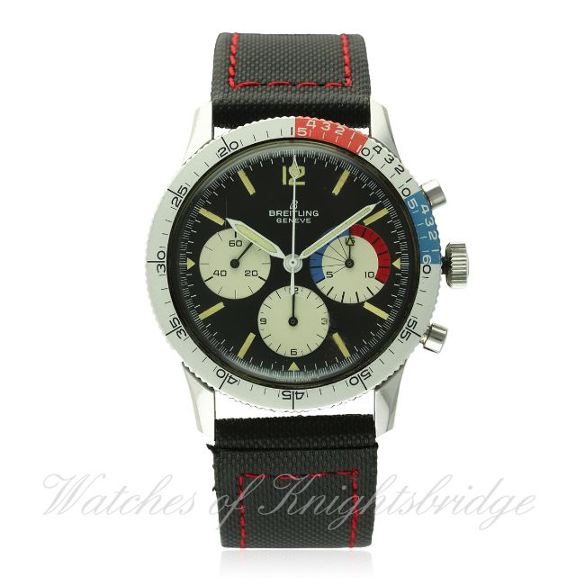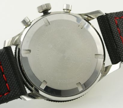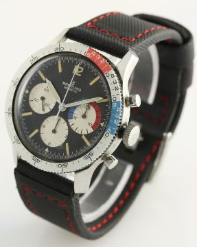 A RARE GENTLEMAN'S STAINLESS STEEL BREITLING CO PILOT YACHTING CHRONOGRAPH WRIST WATCH CIRCA 1960s, REF. 765 CP WITH ORIGINAL BOX & OPEN PAPERWORK D: Black dial with luminous markers, three silver registers, oversized 15 minute countdown totaliser for recording the start of a regatta. M: 17 jewel manual wind movement signed Breitling Watch Ltd, Venus calibre 178. C: Circular case with silver rotating yachting bezel, signed Breitling Watch Ltd & numbered, Breitling crown & pushers, case diameter measures approx. 41mm. S: Black rubber strap. CONDITION REPORT D: Original dial in excellent condition. M: Working at present. C: In excellent condition with some light scratches due to general use. S: In excellent condition. D: Dial / M: Movement / C: Case / S: Strap / B: Bracelet