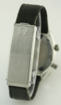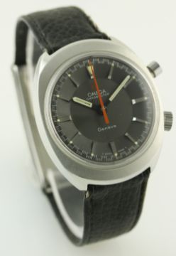 A GENTLEMAN'S STAINLESS STEEL OMEGA GENEVE CHRONOSTOP WRIST WATCH DATED 1968, REF. 145.009 WITH OMEGA BOX AND ORIGINAL PAPERWORK D: Grey dial with silver batons, "checkered flag" tracking. M: 17 jewel manual wind movement signed Omega & numbered, calibre 865. C: Tonneau shaped case, signed Omega Watch Co, Omega crown & pusher, case width measures approx. 35mm. S: Black leather strap with Omega folding clasp. CONDITION REPORT D: Original dial in excellent condition. M: Working at present. C: In excellent condition, some light scratches due to general use. S: Good condition. D: Dial / M: Movement / C: Case / S: Strap / B: Bracelet.