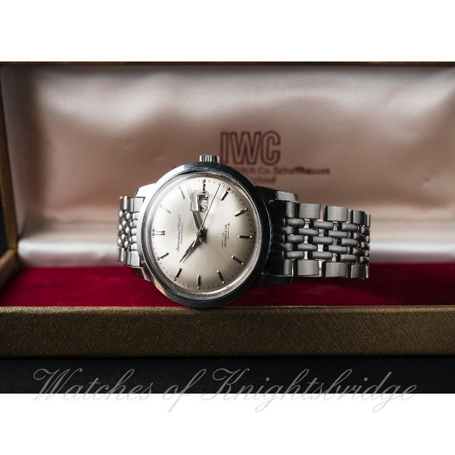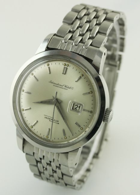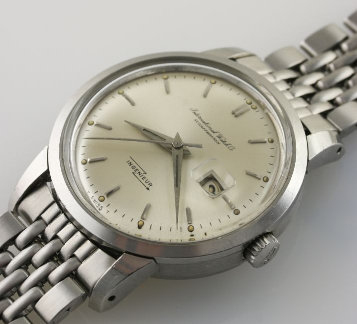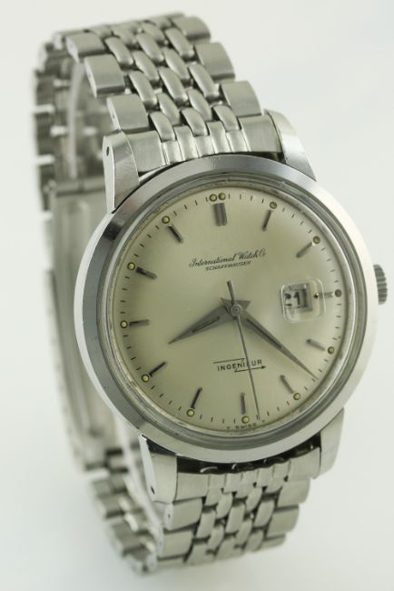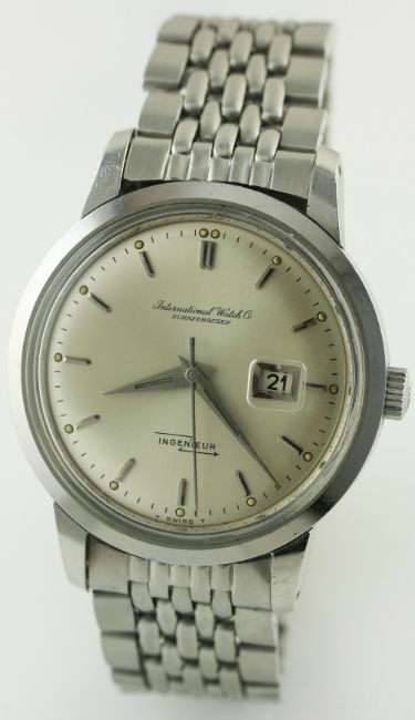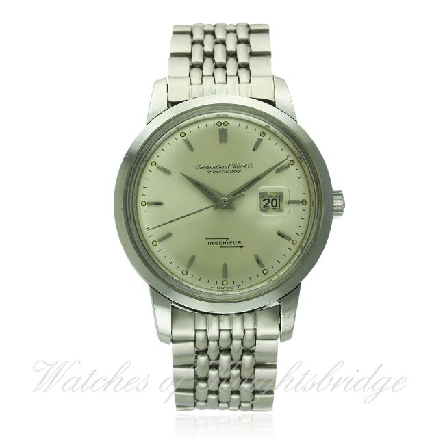 A RARE GENTLEMAN'S STAINLESS STEEL IWC INGENIEUR BRACELET WATCH DATED 1965, REF. 666A WITH IWC BOX & EXTRACT FROM ARCHIVE D: Silver dial with silver batons, date aperture. M: 21 jewel automatic movement signed International Watch Co & numbered, calibre 8531. C: Circular screw back case, signed IWC, dust cover, IWC crown, case diameter measures approx 36mm. B: IWC Gay Freres bracelet dated 1/66. CONDITION REPORT D: Original dial in excellent condition. M: Working at present. C: In excellent condition. B: In excellent condition. D: Dial / M: Movement / C: Case / S: Strap / B: Bracelet