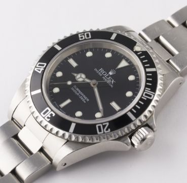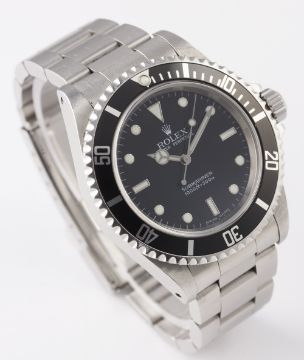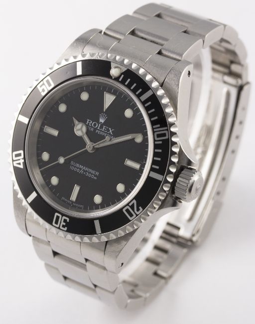 A GENTLEMAN'S STAINLESS STEEL ROLEX OYSTER PERPETUAL SUBMARINER BRACELET WATCH CIRCA 2004, REF. 14060M D: Gloss black dial with luminous inlaid white gold markers, Mercedes hands. M: Automatic movement, signed Rolex. C: Oyster case with 60 minute rotating bezel, sapphire crystal, signed Montres Rolex S.A., F serial no., Rolex triplock crown, case diameter measures approx. 40mm. B: Original Rolex Oyster Submariner bracelet, numbered CL8/93150/501B. CONDITION REPORT D: Original dial in mint condition. M: Working at present. C: In very good condition, with some light scratches due to use, sapphire crystal unmarked. B: In excellent condition with some light scratches due to use. D: Dial / M: Movement / C: Case / S: Strap / B: Bracelet