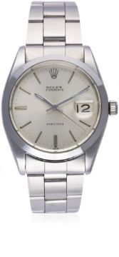 A GENTLEMAN'S STAINLESS STEEL ROLEX OYSTERDATE PRECISION BRACELET WATCH CIRCA 1968, REF. 6694 D: Silver dial with silver batons & hands, date aperture. M: 17 jewel manual wind movement, signed Montres Rolex S.A. & numbered, calibre 1215. C: Oyster case, signed Montres Rolex S.A., dated II.66, numbered, Rolex crown, case diameter measures approx. 35mm. B: Rolex Oyster bracelet, numbered 7835/19/357. CONDITION REPORT D: Original dial in excellent condition. M: Working at present. C: In very good condition, with some small scratches due to general use. B: In excellent condition, with some light scratches. D: Dial / M: Movement / C: Case / S: Strap / B: Bracelet