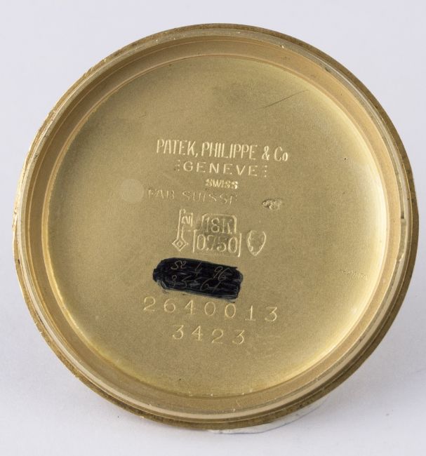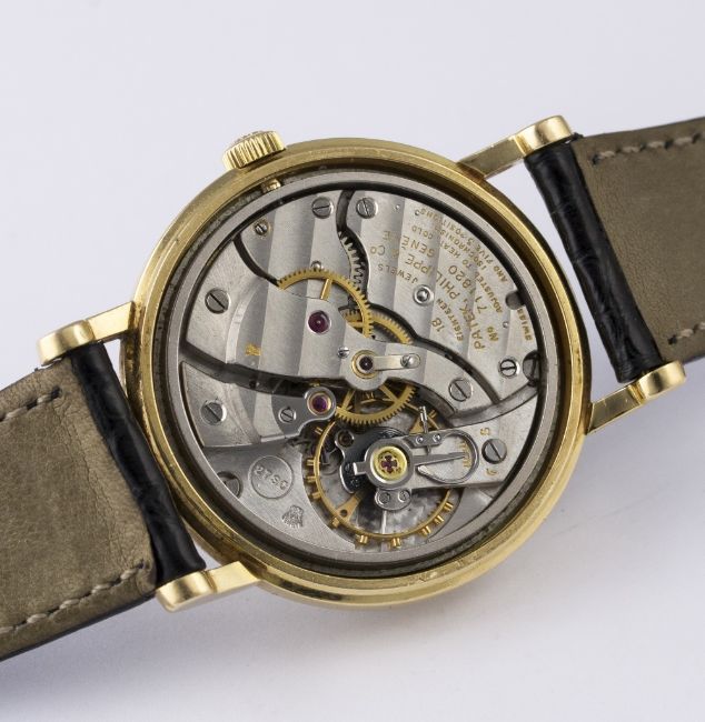 A FINE GENTLEMAN'S 18K SOLID GOLD PATEK PHILIPPE CENTRE SECONDS WRIST WATCH CIRCA 1960s, REF. 3423 WITH BOX D: Silver dial with gold batons & hands. M: 18 jewel manual wind movement, signed Patek Philippe & Co., numbered, calibre 27SC. C: Circular case, signed Patek Philippe & Co., hallmarked & numbered, Patek Philippe crown, case diameter measures approx. 34mm. S: Patek Philippe leather strap & 18k solid gold pin buckle. CONDITION REPORT D: Original dial in excellent condition. M: Working at present. C: In excellent condition with some light scratches due to general use. S: In good condition. D: Dial / M: Movement / C: Case / S: Strap / B: Bracelet.