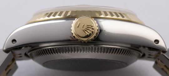 A LADIES STEEL & GOLD ROLEX OYSTER PERPETUAL DATEJUST BRACELET WATCH CIRCA 1986 , REF. 69173 D: Champagne dial with gilt batons, Roman numeral chapter ring, date aperture. M: Automatic chronometer movement with quick set date, signed Rolex & numbered. C: Oyster case with 18k solid gold fluted bezel, sapphire crystal, signed Montres Rolex S.A., Rolex crown, case diameter measures approx. 26mm. B: Original Rolex Jubilee steel & 18k solid gold bracelet, numbered P10/62523D-18/468-B.CONDITION REPORT D: Original dial in excellent condition. M: Working at present. C: In excellent condition. B: In excellent condition. D: Dial / M: Movement / C: Case / S: Strap / B: Bracelet