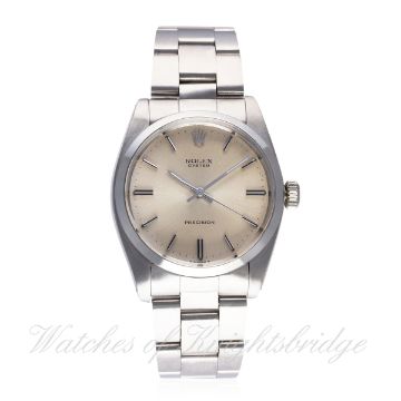 A GENTLEMAN'S STAINLESS STEEL ROLEX OYSTER PRECISION BRACELET WATCH CIRCA 1975, REF. 6426 D: Silver dial with silver batons & hands. M: 17 jewel manual wind movement, signed Montres Rolex S.A. & numbered, calibre 1225. C: Oyster case, signed Montres Rolex S.A., numbered, Rolex crown, case diameter measures approx. 35mm. B: Rolex "heavy" Oyster bracelet, numbered 78350/19/557.CONDITION REPORT D: Original dial in excellent condition. M: Working at present. C: In excellent condition. B: In excellent condition. D: Dial / M: Movement / C: Case / S: Strap / B: Bracelet