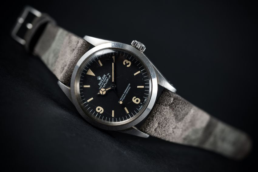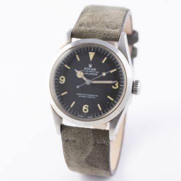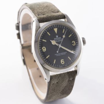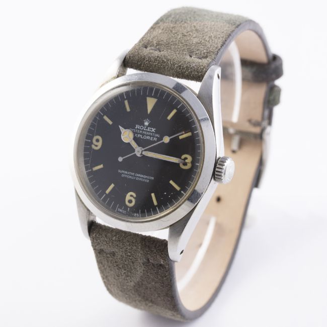 D: Original dial in excellent condition,luminous showing a nice patina matching on dial and hands, one small scratch at the bottom edge of the dial at the SWISS - T<25. M: Working at present. C: In excellent condition, with some light scratches due to general use. S: New.