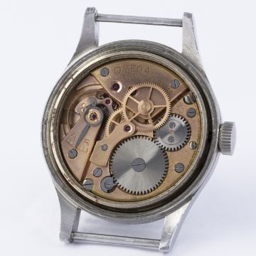 A GENTLEMAN`S STAINLESS STEEL BRITISH MILITARY OMEGA RAF PILOTS WRIST WATCH DATED 1953, REF. 2777-1 SC