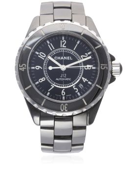 A FULL SIZE BLACK CERAMIC CHANEL J12 AUTOMATIC BRACELET WATCH CIRCA 2010