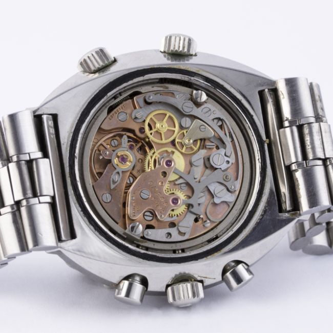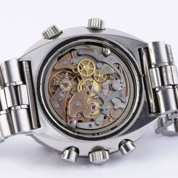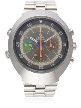 A RARE GENTLEMAN’S STAINLESS STEEL OMEGA FLIGHTMASTER CHRONOGRAPH BRACELET WATCH CIRCA 1970, REF. 145.013 1ST GENERATION