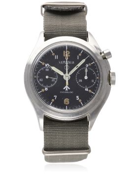 D: Black dial with Arabic numerals & tritium luminous markers, military "fat" arrow, double register recording minutes & continuous seconds. M: 17 jewel manual wind movement, signed Lemania Watch Co. & numbered, calibre 2220. C: Asymmetric case, issue markings ^ 6BB/924-3306 292/70, case diameter measures approx. 40mm. S: NATO strap.