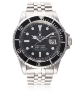 A GENTLEMAN'S STAINLESS STEEL ROLEX OYSTER PERPETUAL DATE SUBMARINER BRACELET WATCH CIRCA 1970, REF. 1680 WITH SERVICE DIAL