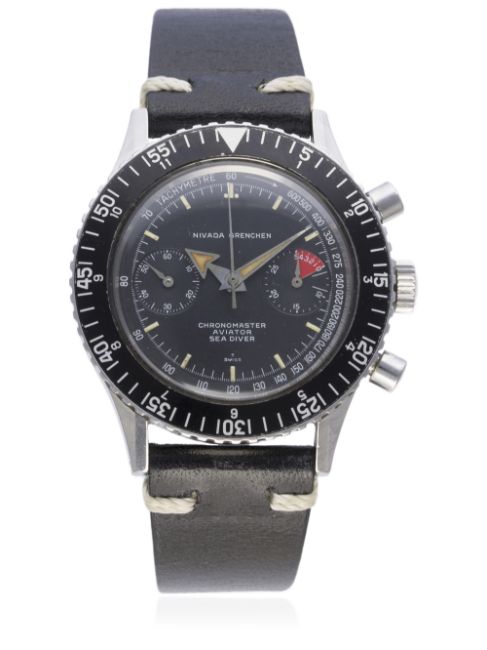 A GENTLEMAN’S STAINLESS STEEL NIVADA GRENCHEN CHRONOMASTER AVIATOR SEA DIVER CHRONOGRAPH WRIST WATCH CIRCA 1960s
