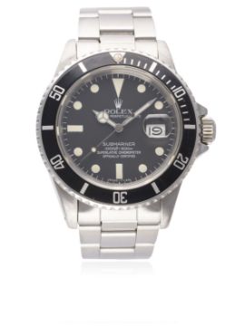 A GENTLEMAN'S STAINLESS STEEL ROLEX OYSTER PERPETUAL DATE SUBMARINER BRACELET WATCH CIRCA 1983, REF. 16800 "TRANSITIONAL" MODEL