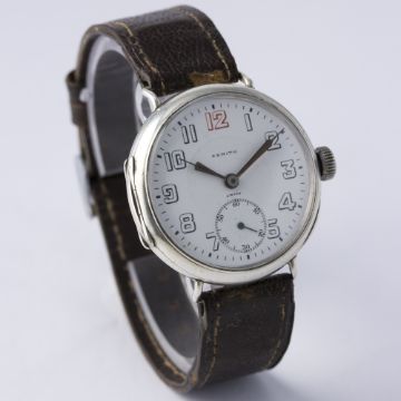 A GENTLEMAN'S SOLID SILVER ZENITH "OFFICERS" WRIST WATCH CIRCA 1920