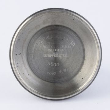A RARE GENTLEMAN'S STAINLESS STEEL ROLEX OYSTER PERPETUAL EXPLORER WATCH DATED 1964, REF. 5500 WITH ORIGINAL BOX, PAPERS & STOCK TAG