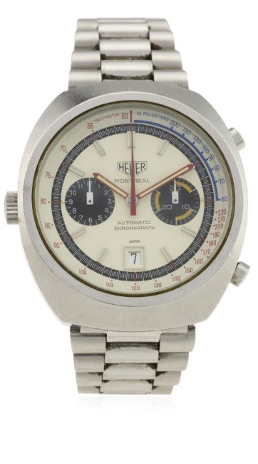 A RARE GENTLEMAN'S STAINLESS STEEL HEUER MONTREAL AUTOMATIC CHRONOGRAPH BRACELET WATCH CIRCA 1970s, REF. 110.503W