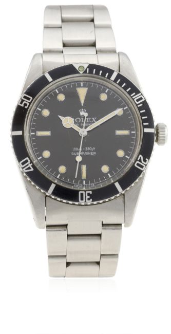 A RARE GENTLEMAN'S STAINLESS STEEL ROLEX OYSTER PERPETUAL "NON-SHOULDERED" SUBMARINER BRACELET WATCH CIRCA 1956, REF. 6536/1  D: Black (service) dial with luminous markers & Mercedes hands, chapter ring. M: 25 jewel automatic movement with "butterfly" rotor, signed Montres Rolex S.A. & numbered, calibre 1030. C: Oyster case with 60 minute rotating bezel, signed Montres Rolex S.A., dated II.56, numbered, Rolex crown, case diameter measures approx. 37mm. B: Rolex "heavy" Oyster bracelet, numbered 78360/580.CONDITION REPORT D: Rolex service dial in excellent condition, tritium luminous showing a nice patina & matching with hands. M: Working at present. C: In excellent condition with some light scratches due to general use. S: In excellent condition with some light wear to the clasp. D: Dial / M: Movement / C: Case / S: Strap / B: Bracelet