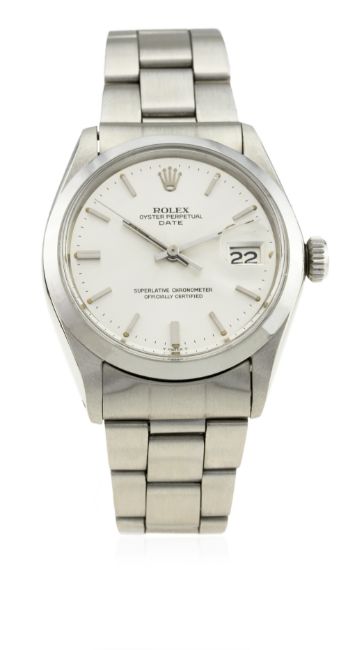 A GENTLEMAN'S STAINLESS STEEL ROLEX OYSTER PERPETUAL DATE BRACELET WATCH CIRCA 1972, REF. 1500 D: Silver "Sigma" dial with silver batons & hands, date aperture. M: 26 jewel automatic chronometer movement, signed Montres Rolex S.A., numbered, calibre 1570. C: Oyster case, signed Montres Rolex S.A., dated III.72, numbered, Rolex crown, case diameter measures approx. 35mm. B: Rolex Oyster bracelet, numbered V5/78350/19/557.CONDITION REPORT D: Original dial in excellent condition. M: Working at present. C: In excellent condition, with some light scratches due to general use. B: In excellent condition. D: Dial / M: Movement / C: Case / S: Strap / B: Bracelet