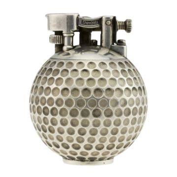 A SOLID SILVER DUNHILL UNIQUE "GOLF BALL" TABLE LIGHTER CIRCA 1970s C: "Golf ball" case, signed Dunhill, hallmarked & numbered, roller mechanism with hinged arm, diameter measure approx 43mm and hight approx 54mm.CONDITION REPORT C: Case in excellent condition with some light scratches and tarnishing due to general use. D: Dial / M: Movement / C: Case / S: Strap / B: Bracelet