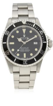 A RARE GENTLEMAN'S STAINLESS STEEL ROLEX OYSTER PERPETUAL DATE SEA DWELLER BRACELET WATCH CIRCA 1982, REF. 16660 "TRIPLE SIX" / "TRANSITIONAL" MODEL D: Matt black dial with luminous markers & Mercedes hands, date aperture. M: 27 jewel automatic chronometer movement with quick-set date, signed Rolex S.A., calibre 3035. C: Oyster case with 60 minute rotating bezel, helium escape valve, sapphire crystal, signed Montres Rolex S.A., numbered, Rolex triplock crown, case diameter measures approx. 40mm. B: Rolex Oyster Sea-Dweller bracelet, numbered J12/93160/592.CONDITION REPORT D: Original dial in excellent condition, luminous showing a nice patina. M: Working at present. C: In excellent condition. S: In excellent condition. D: Dial / M: Movement / C: Case / S: Strap / B: Bracelet