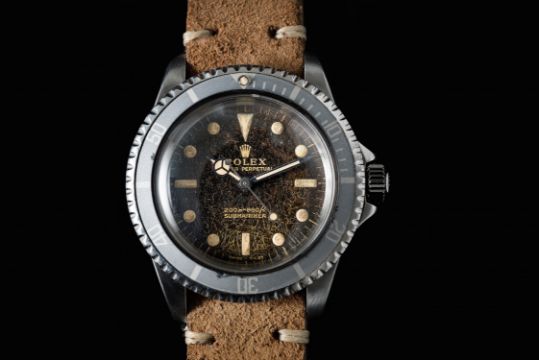 A RARE GENTLEMAN'S STAINLESS STEEL ROLEX OYSTER PERPETUAL SUBMARINER WRIST WATCH CIRCA 1965, REF. 5513 WITH "TROPICAL" DIAL D: Gloss black dial with luminous markers & Mercedes hands, gilt font & tracking. M: 26 jewel automatic movement, signed Rolex Geneva & numbered, calibre 1520. C: Oyster case with rotating 60 minute "ghost" bezel, signed Montres Rolex S.A. & dated II.65, numbered, Rolex triplock crown, case diameter measures approx. 40mm. S: JPM suede strap.CONDITION REPORT D: Original dial in very good "tropical" condition. M: Working at present. C: In excellent condition with some light scratches due to general use, bezel insert nicely faded. S: In excellent condition. D: Dial / M: Movement / C: Case / S: Strap / B: Bracelet