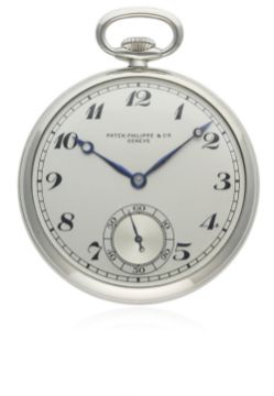 A RARE GENTLEMAN'S STAINLESS STEEL PATEK PHILIPPE & CIE POCKET WATCH CIRCA 1930s, REF. 620731 D: Silver dial with Breguet numerals & hands, subsidiary seconds. M: Manual wind movement signed Patek Philippe Geneve & Co Geneve, numbered. C: Circular case, signed Patek Philippe & Co Geneve, numbered, case diameter measures approx. 46mm excluding the neck & bow.CONDITION REPORT D: Original dial in excellent condition. M: Working at present. C: In excellent condition.  D: Dial / M: Movement / C: Case / S: Strap / B: Bracelet