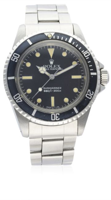 A GENTLEMAN'S STAINLESS STEEL ROLEX OYSTER PERPETUAL SUBMARINER BRACELET WATCH CIRCA 1969, REF. 5513 WITH LATER SERVICE DIAL D: Matt black dial with luminous markers & Mercedes hands. M: 26 jewel automatic movement, signed Rolex Geneva, calibre 1520. C: Oyster case with 60 minute rotating bezel, signed Montres Rolex S.A., dated II.67, numbered, Rolex triplock crown, case diameter measures approx. 40mm. B: Rolex "light" Oyster Submariner bracelet with flip lock clasp & extension, numbered 9315/380.CONDITION REPORT D: Original dial in excellent condition. M: Working at present. C: In excellent condition, with some light scratches due to general use. B: In very good condition, with some light scratches & wear due to general use. D: Dial / M: Movement / C: Case / S: Strap / B: Bracelet
