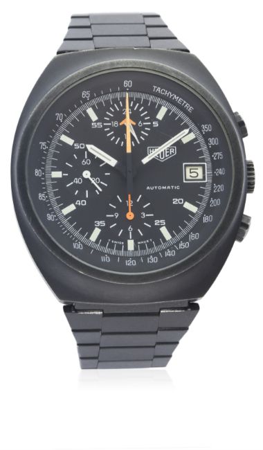 A GENTLEMAN'S PVD COATED HEUER AUTOMATIC CHRONOGRAPH BRACELET WATCH CIRCA 1980s, REF. 510.501 D: Black dial with luminous makers, triple register recording hours, continuous seconds & 24 hour display, centre second & minute chronograph hands, date aperture, inner tachymetre bezel. M: 17 jewel automatic movement signed Lemania Watch Ltd, calibre 5100. C: Tonneau shaped case, signed Heuer 5100, case width measures approx. 42mm. B: Original PVD coated bracelet.CONDITION REPORT D: Original dial in excellent condition. M: Working at present. C: In excellent condition, with some small scratches due to occasional use. B: In excellent condition, with some light scratches. D: Dial / M: Movement / C: Case / S: Strap / B: Bracelet