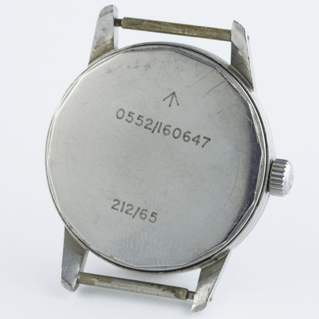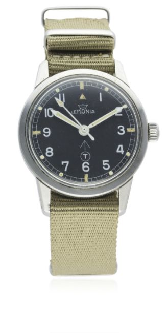 A RARE GENTLEMAN'S STAINLESS STEEL BRITISH MILITARY ROYAL NAVY LEMANIA WRIST WATCH DATED 1965, REF. 920-64 ISSUED TO ROYAL NAVY DIVING SUPERVISORSD: Black dial with Arabic numerals & tritium luminous markers & hands, military arrow. M: 17 jewel manual wind movement signed Lemania & numbered, calibre 3060. C: Circular military screw back case, original Lemania anti-slip crown, issue markings ^ 0552/160647 212/65, case diameter measures approx. 35mm. S: NATO strap.CONDITION REPORTD: Original dial in excellent condition. M: Working at present. C: In excellent condition, with some scratches due to use. S: In excellent condition. D: Dial / M: Movement / C: Case / S: Strap / B: Bracelet