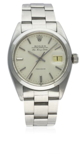 A GENTLEMAN'S STAINLESS STEEL ROLEX OYSTER PERPETUAL AIR KING DATE PRECISION BRACELET WATCH CIRCA 1977, REF. 5700D: Silver dial with silver batons & hands, date aperture. M: 25 jewel automatic movement signed Rolex, calibre 1530. C: Oyster case, signed Montres Rolex S.A., numbered, Rolex crown, case diameter measures approx. 34mm. B: Rolex Oyster bracelet, numbered 78350/19/557.CONDITION REPORTD: Dial in excellent condition. M: Working at present. C: In excellent condition. B: In excellent condition. D: Dial / M: Movement / C: Case / S: Strap / B: Bracelet