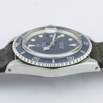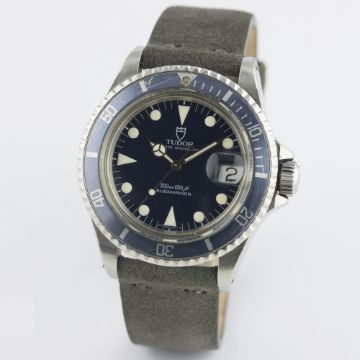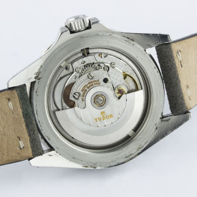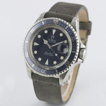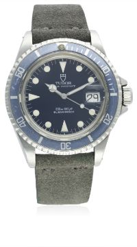 A GENTLEMAN'S STAINLESS STEEL ROLEX TUDOR PRINCE OYSTERDATE SUBMARINER WRIST WATCH CIRCA 1992, REF. 79090 D: Blue dial with luminous markers & Mercedes hands, date aperture. M: 25 jewel automatic movement, signed Tudor Auto-Prince. C: 'Rolex Oyster' case with blue 60 minute rotating bezel, signed Montres Tudor S.A., numbered, Rolex triplock crown, case diameter measures approx. 40mm. S: Suede camo strap.CONDITION REPORTD: Original dial in excellent condition. M: Working at present. C: In very good condition, with some small scratches due to general use. S: In excellent condition. D: Dial / M: Movement / C: Case / S: Strap / B: Bracelet