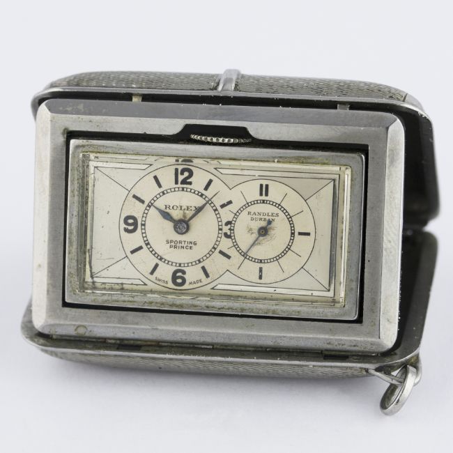 A RARE STEEL CASED ROLEX SPORTING PRINCE POCKET WATCH CIRCA 1930s RETAILED BY RANDLES, DURBAN