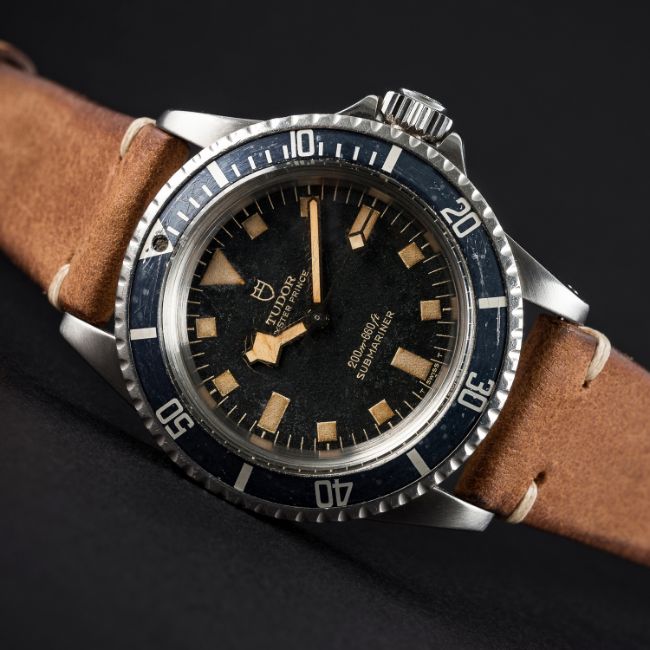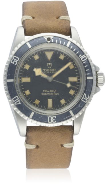 A RARE GENTLEMAN'S STAINLESS STEEL ROLEX TUDOR OYSTER PRINCE "SNOWFLAKE" SUBMARINER WRIST WATCH CIRCA 1974, REF. 7016/0 D: Black dial with luminous markers & "snowflake" hands. M: 25 jewel automatic movement, signed Tudor Auto-Prince. C: 'Rolex Oyster' case with 60 minute rotating bezel, signed Montres Tudor S.A., numbered, Rolex triplock crown, case diameter measures approx. 40mm. S: JPM tan leather strap.CONDITION REPORTD: Original dial in very good condition, nicely aged with the luminous showing a nice patina on dial and hands. M: Working at present. C: In excellent condition, bezel insert nicely faded with some scratches. S: In excellent condition. D: Dial / M: Movement / C: Case / S: Strap / B: Bracelet