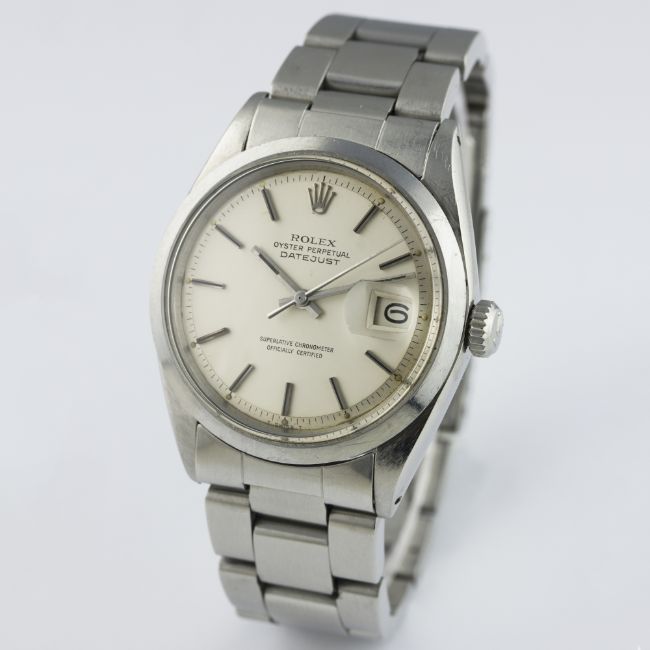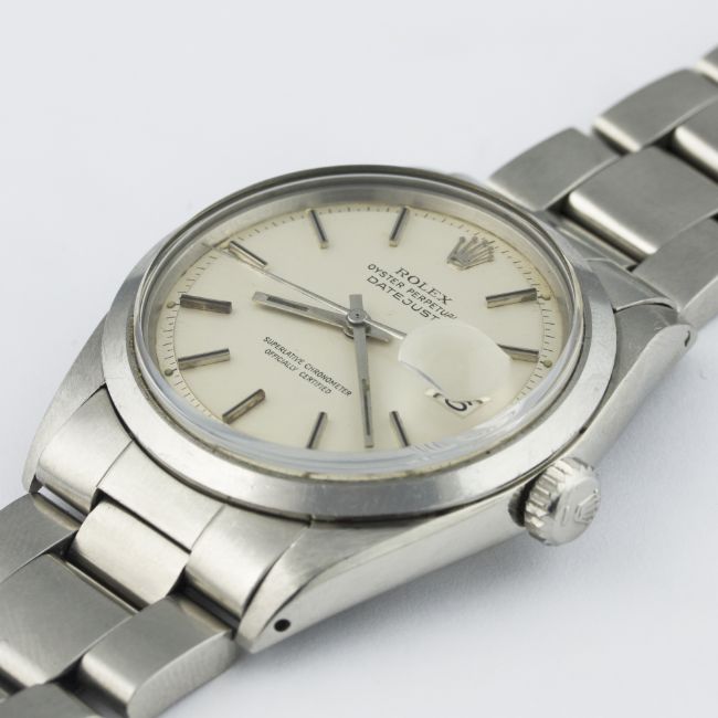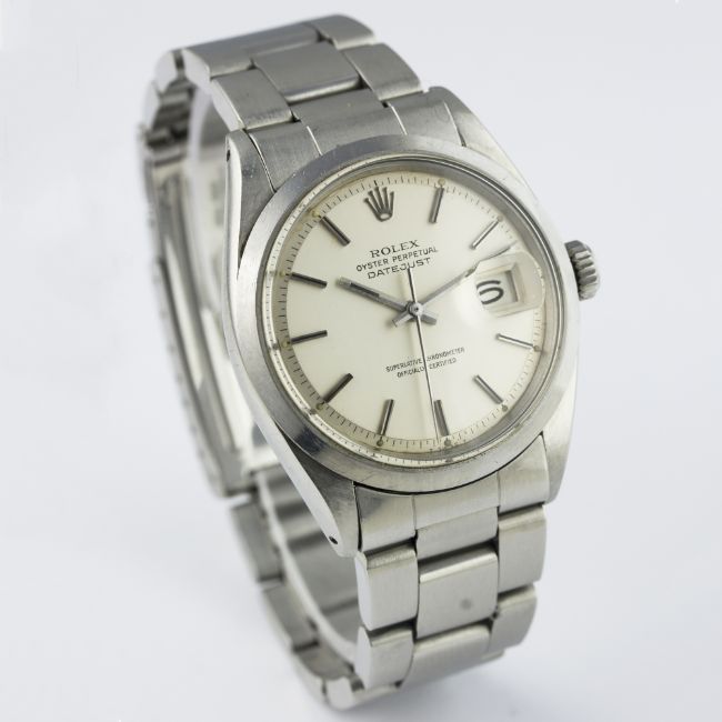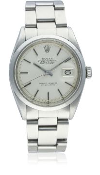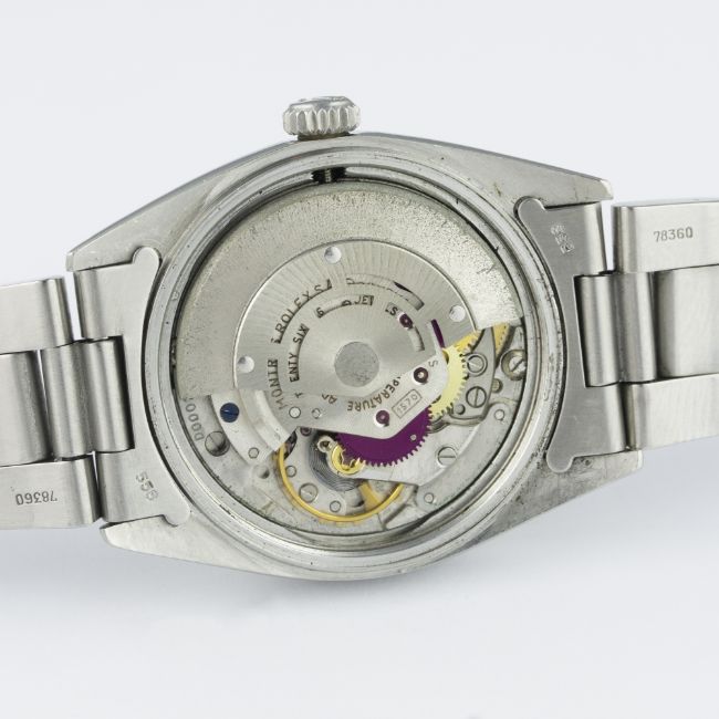 D: Silver dial with black inlaid silver batons, date aperture. M: 26 jewel automatic chronometer movement, signed Montres Rolex S.A. & numbered, calibre 1570. C: Oyster case with smooth bezel, signed Montres Rolex S.A., dated IV.71, numbered, Rolex crown, case diameter measures approx. 36mm B: Rolex Oyster bracelet, clasp numbered 6251H, bracelet numbered 78360/558.
