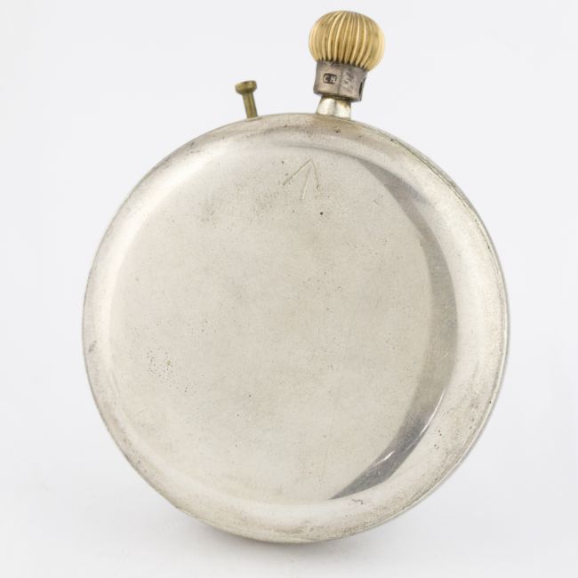 A RARE SOLID SILVER CASED BRITISH ROYAL NAVY FREE SPRUNG DECK WATCH BY PHILIPS, 4 FINSBURY PAVEMENT, MOORGATE LONDON CIRCA 1911, IN ORIGINAL FITTED WOODEN BOX D: White enamel dial with Roman numerals, military arrow, numbered 1983, subsidiary seconds. M: English keyless wind free sprung movement signed Philips, numbered 1983, engraved military arrow. C: Circular hinged case, marked ATO, London hallmarks, military arrow on case back, original crown, case diameter measures approx. 57mm excluding the neck & crown. CONDITION REPORT D: Original dial in excellent condition. M: Working at present. C: In excellent condition with some light surface scratches. D: Dial / M: Movement / C: Case / S: Strap / B: Bracelet