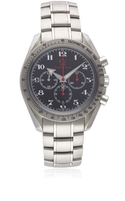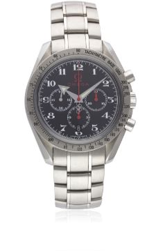 A GENTLEMAN'S STAINLESS STEEL OMEGA SPEEDMASTER AUTOMATIC CHRONOGRAPH BRACELET WATCH CIRCA 2006, REF. 3556.50.00 OLYMPIC GAMES EDITIONMovement: 33J, automatic, cal. 3303, signed Omega, numbered.Case: Diameter approx. 42mm, screw back, signed Omega Official Timekeeper with Olympic Rings embossed on case back, numbered, tachymetre bezel, Omega crown.Bracelet: Original Omega Speedmaster bracelet. CONDITION REPORTDial: Original dial in excellent condition.Movement: Working at present.Case: In excellent condition, with some light scratches due to general use.Strap/Bracelet: In excellent condition, with some light scratches due to general use.