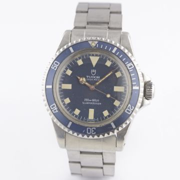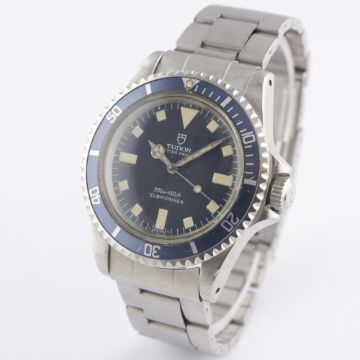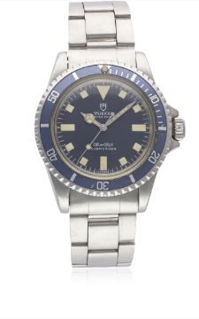 A GENTLEMAN'S STAINLESS STEEL ROLEX TUDOR OYSTER PRINCE "SNOWFLAKE" SUBMARINER BRACELET WATCHCIRCA 1970s, REF. 94010 WITH BLUE DIAL & BEZEL, FITTED WITH TRITIUM MERCEDES HANDS Movement: 25J, automatic, signed Tudor Auto-Prince.Case: Diameter approx. 40mm, Oyster case, signed Montres Tudor S.A., numbered, 60 minute rotating bezel, Rolex triplock crown.Bracelet: Oyster bracelet, numbered 7836/380. CONDITION REPORTDial: Original dial in excellent condition.Movement: Working at present.Case: In very good condition, with some small scratches due to general use.Strap/Bracelet: In good condition, with light scratches & wear.