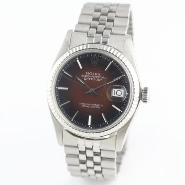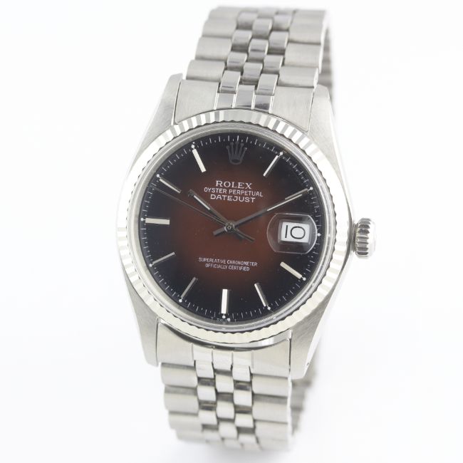 A GENTLEMAN'S STEEL & WHITE GOLD ROLEX OYSTER PERPETUAL DATEJUST BRACELET WATCHCIRCA 1970s, REF. 1601Movement: 26J, automatic chronometer, cal. 1570, signed Montres Rolex S.A., numbered.Case: Diameter approx. 36mm, Oyster case, signed Montres Rolex S.A., numbered, solid white gold fluted bezel, Rolex crown.Bracelet: Rolex Jubilee bracelet. CONDITION REPORTDial: Dial in excellent condition.Movement: Working at present.Case: In very good condition.Strap/Bracelet: In excellent condition.