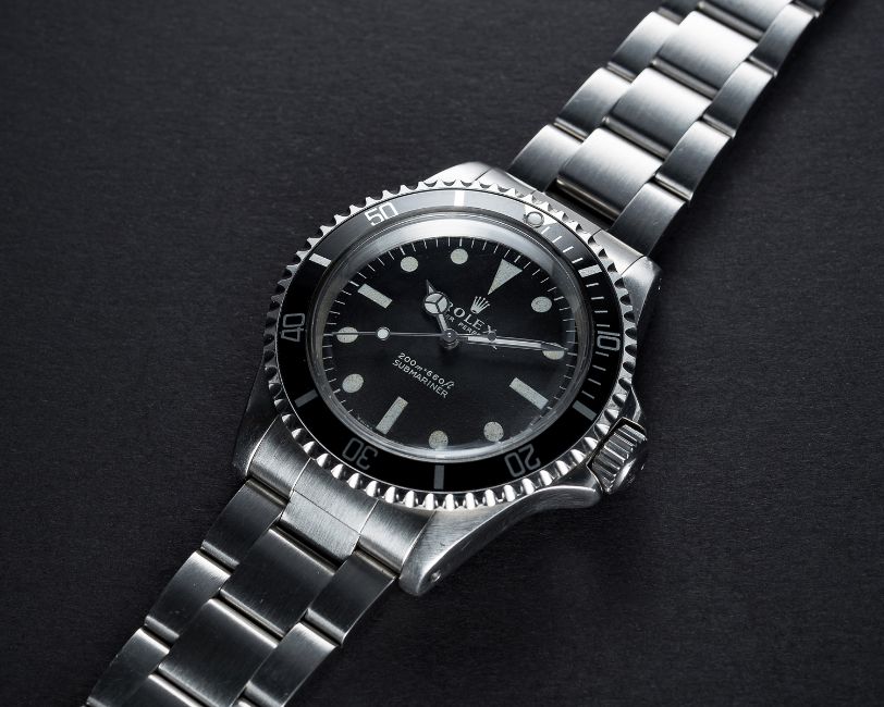 A RARE GENTLEMAN'S STAINLESS STEEL ROLEX OYSTER PERPETUAL SUBMARINER BRACELET WATCHDATED 1967, REF. 5513 WITH "METERS FIRST" MATT DIAL Movement: 26J, automatic, cal. 1520, signed Rolex S.A., numbered.Case: Diameter approx. 40mm, Oyster case, signed Montres Rolex S.A., dated II.67, numbered, 60 minute rotating bezel, Rolex triplock crown.Bracelet: Rolex Oyster Submariner bracelet, numbered DT6/93150/580. CONDITION REPORTDial: Original dial in excellent condition, showing some small signs of age.Movement: Working at present.Case: In very good  condition, with some small scratches due to general use.Strap/Bracelet: In excellent condition.