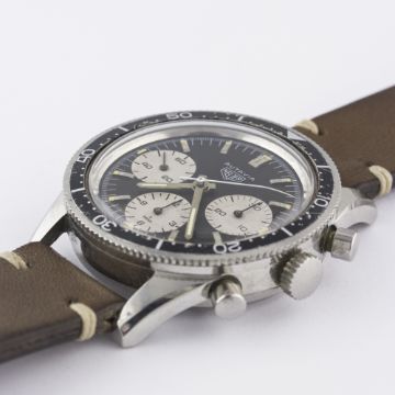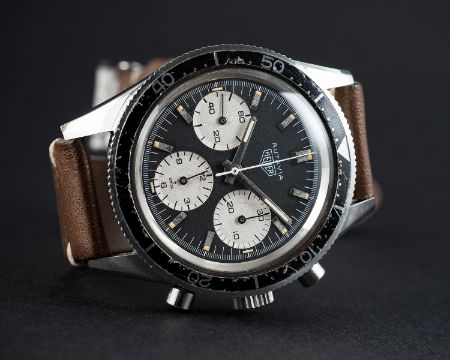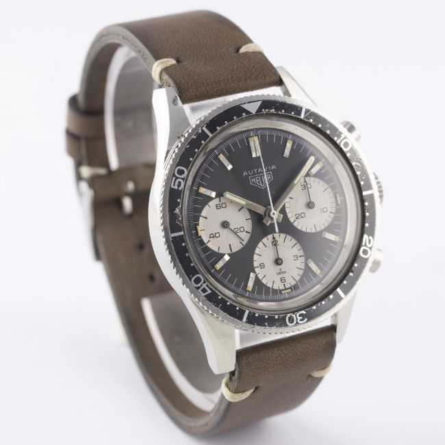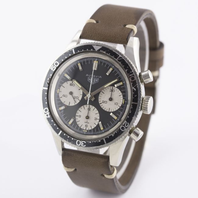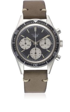 A VERY RARE GENTLEMAN'S STAINLESS STEEL HEUER AUTAVIA CHRONOGRAPH WRIST WATCH CIRCA 1968, REF. 2446 WITH 3RD EXECUTION DIAL, THE MODEL WORN BY JOCHEN RINDT, THE POSTHUMOUS 1970 FORMULA ONE WORLD CHAMPION, A SEASON IN WHICH HE TRAGICALLY SUFFERED A FATAL ACCIDENT IN A PRACTICE SESSION AT MONZA, ITALYMovement: 17J, manual wind, Valjoux cal. 72, signed Heuer-Leonidas SA.Case: Diameter approx. 39mm, 2nd execution, screw back, signed Heuer-Leonidas S.A., signed Heuer Autavia on case back, numbered, 60 minute rotating bezel.Strap: Leather. CONDITION REPORTDial: Original dial in excellent condition.Movement: Working at present.Case: In excellent condition, with some light scratches due to general use, some light wear to bezel.Strap/Bracelet: In excellent condition.