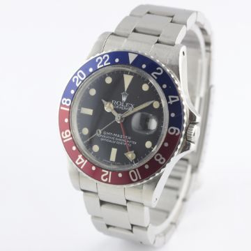A GENTLEMAN'S STAINLESS STEEL ROLEX OYSTER PERPETUAL GMT MASTER BRACELET WATCHCIRCA 1983, REF. 16750 "TRANSITIONAL" MODEL WITH MATT DIALMovement: 27J, automatic chronometer, quick-set date, cal. 3075, signed Rolex S.A., numbered.Case: Diameter approx. 40mm, Oyster case, signed Montres Rolex S.A., numbered, 24 hour rotating "Pepsi" bezel, plexiglass, Rolex crown.Bracelet: Rolex Oyster bracelet, numbered M2/78360/580. CONDITION REPORTDial: Original dial in excellent condition.Movement: Working at present.Case: In excellent condition, with some small scratches due to general use.Strap/Bracelet: In very good condition.