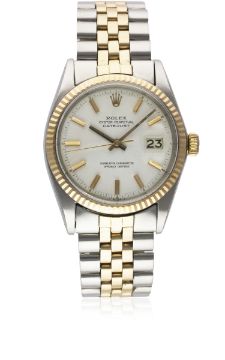 A GENTLEMAN'S STEEL & ROSE GOLD ROLEX OYSTER PERPETUAL DATEJUST BRACELET WATCHCIRCA 1960s, REF. 1601Movement: 26J, automatic chronometer, cal. 1570, signed Montres Rolex S.A., numbered.Case: Diameter approx. 36mm, Oyster case, signed Montres Rolex S.A., dated II.63, numbered, solid rose gold fluted bezel, Rolex crown.Bracelet: Rolex Jubilee steel & solid rose gold bracelet, numbered 6252H14/255, dated 3.71. CONDITION REPORTDial: Original dial in excellent condition, showing some very small signs of age.Movement: Working at present.Case: In excellent condition, with some light scratches due to general use.Strap/Bracelet: In excellent condition.