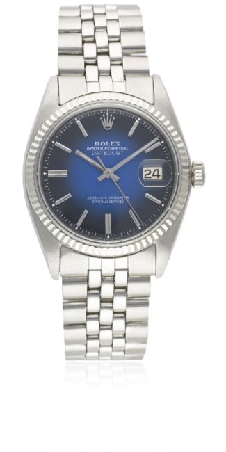A GENTLEMAN'S STEEL & WHITE GOLD ROLEX OYSTER PERPETUAL DATEJUST BRACELET WATCHCIRCA 1967, REF. 1601Movement: 26J, automatic chronometer, cal. 1570, signed Montres Rolex S.A., numbered.Case: Diameter approx. 36mm, Oyster case, signed Montres Rolex S.A., dated II.67, numbered, solid white gold fluted bezel, Rolex crown.Bracelet: Rolex Jubilee bracelet, numbered 6251H/55. CONDITION REPORTDial: Dial in excellent condition.Movement: Working at present.Case: In very good condition, some wear between lugs due to general use.Strap/Bracelet: In excellent condition.