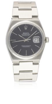 A GENTLEMAN'S STAINLESS STEEL ROLEX OYSTERQUARTZ DATEJUST BRACELET WATCH CIRCA 1978, REF. 17000 WITH BLACK DIALMovement: 11J, quartz chronometer, cal. 5035, quick-set date, signed Rolex, numbered.Case: Width approx. 36mm, Oyster case, signed Montres Rolex S.A., numbered, sapphire crystal, Rolex crown.Bracelet: Original Rolex Oyster bracelet. CONDITION REPORTDial: Original dial in excellent condition.Movement: Working at present.Case: In excellent condition.Strap/Bracelet: In excellent condition.