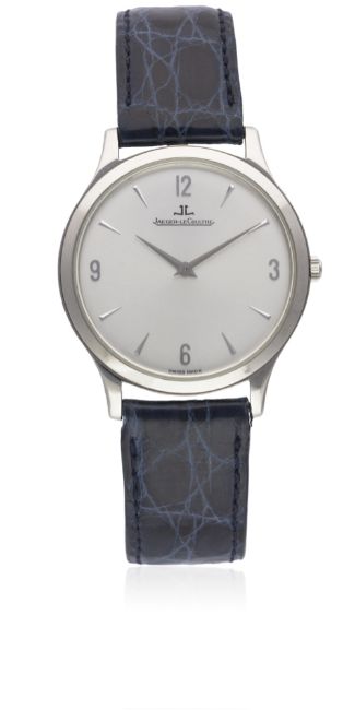 A GENTLEMAN'S STAINLESS STEEL JAEGER LECOULTRE MASTER CONTROL ULTRA SLIM WRIST WATCHCIRCA 2005, REF. 145.8.79Movement: Manual wind, signed Jaeger-LeCoultre, numbered.Case: Diameter approx. 34mm, Master Control emblem embossed on case back, signed Jaeger-LeCoultre, numbered, JLC crown.Strap: Leather. CONDITION REPORTDial: Original dial in excellent condition.Movement: Working at present.Case: In excellent condition, with some light scratches due to general use.Strap/Bracelet: In excellent condition.