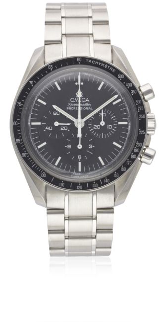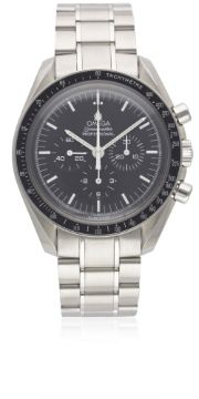 A GENTLEMAN'S STAINLESS STEEL OMEGA SPEEDMASTER PROFESSIONAL CHRONOGRAPH BRACELET WATCH CIRCA 2006, REF. ST 145.0022 / 345.0022  Movement: 18J, manual wind, cal. 1861, signed Omega, numbered. Case: Diameter approx. 42mm, screw back, Speedmaster emblem embossed on case back with NASA moon landing tribute, signed Omega Watch Co., numbered, dust cover, tachymetre bezel, Omega crown.Bracelet: Original Omega Speedmaster Professional bracelet. CONDITION REPORTDial: Original dial in excellent condition.Movement: Working at present.Case: In excellent condition, with light scratches.Strap/Bracelet: In excellent condition, with light scratches due to general use.