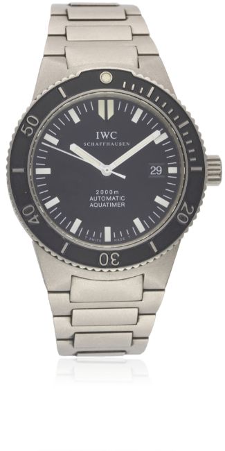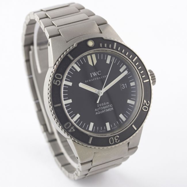 A GENTLEMAN'S TITANIUM IWC AQUATIMER GST AUTOMATIC BRACELET WATCH CIRCA 2005, REF. 3536 WITH BOX, PAPERS, BOOKLETS, TOOLS, TAGS & ADDITIONAL IWC RUBBER STRAP WITH PIN BUCKLEMovement: 21J, automatic, cal. 37524, signed International Watch Co., numbered. Case: Diameter approx. 42mm, screw back, Aquatimer badge embossed on case back, signed International Watch Co, 60 minute rotating & locking bezel, original crown.Bracelet: Original IWC Aquatimer titanium bracelet. CONDITION REPORTDial: Original dial in excellent condition.Movement: Working at present.Case: In excellent condition.Strap/Bracelet: In excellent condition.The watch looks to have been worn occasionally.