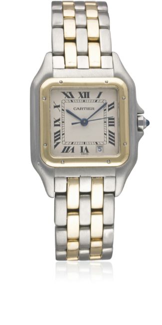 A GENTLEMAN'S STEEL & GOLD CARTIER PANTHERE BRACELET WATCH CIRCA 1990s Movement: Quartz, signed Cartier.Case: Width approx. 27mm, signed Cartier, numbered, solid gold bezel, sapphire crown.Bracelet: Original Cartier Panthere steel & solid gold bracelet. CONDITION REPORTDial: Original dial in excellent condition.Movement: Working at present.Case: In excellent condition, with some small scratches due to general use.Strap/Bracelet: In excellent condition.