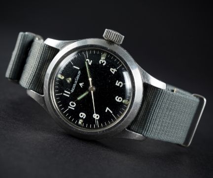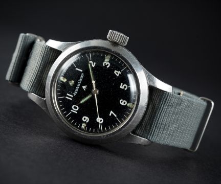 A VERY RARE GENTLEMAN'S STAINLESS STEEL BRITISH MILITARY JAEGER LECOULTRE MARK 11 RAF PILOTS WRIST WATCH DATED 1948Movement: Manual wind, hacking seconds, cal. 488/S br, signed Jaeger-LeCoultre with military arrow, numbered.Case: Diameter approx. 35mm, fixed bars, screw back, signed LeCoultre Co, issue markings ^ 6B/346 2455/48 B/97, anti-magnetic dust cover.Strap: NATO. CONDITION REPORTDial: Original dial in excellent condition.Movement: Working at present.Case: In excellent condition, with some small scratches due to use.Strap/Bracelet: In excellent condition.