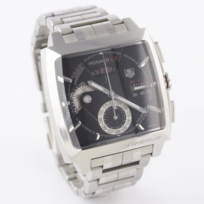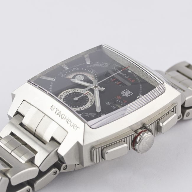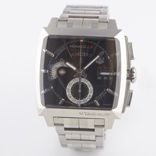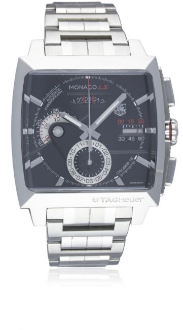 A GENTLEMAN'S STAINLESS STEEL TAG HEUER MONACO LS AUTOMATIC CHRONOGRAPH BRACELET WATCH CIRCA 2010, REF. CAL2110 WITH BOX & PAPERSMovement: Automatic, cal. 12, signed TAG Heuer.Case: Width approx. 41mm, signed, numbered, TAG Heuer crown & pushers.Bracelet: Original TAG Heuer bracelet. CONDITION REPORTDial: Original dial in excellent condition.Movement: Working at present.Case: In excellent condition.Strap/Bracelet: In excellent condition.
