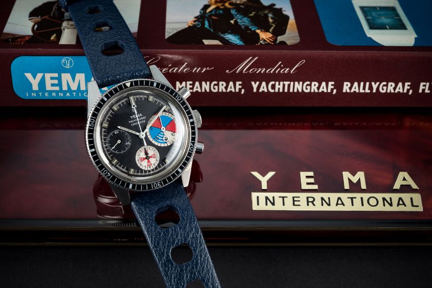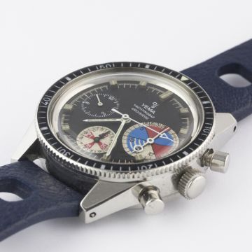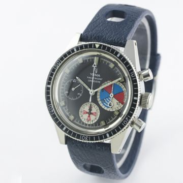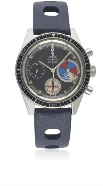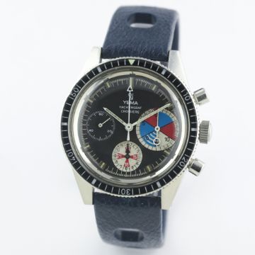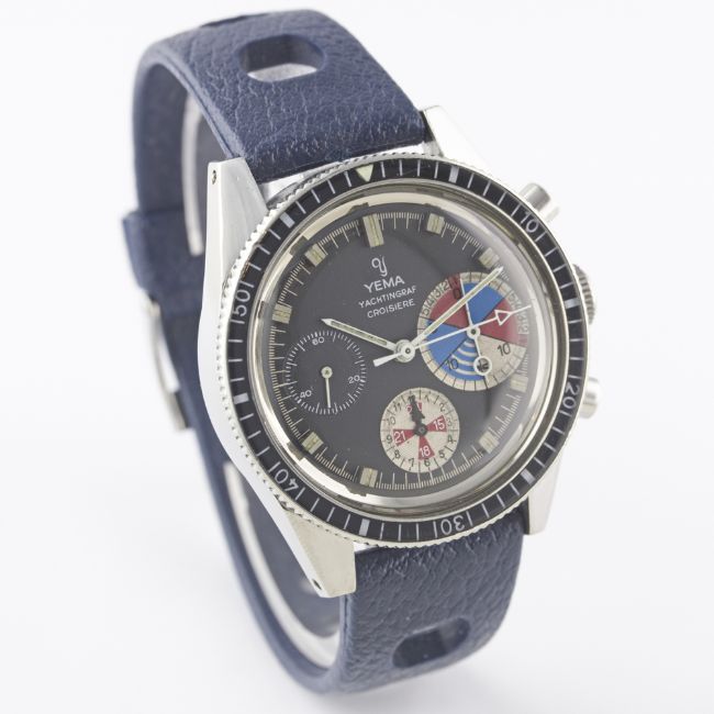 A VERY RARE GENTLEMAN'S STAINLESS STEEL YEMA YACHTINGRAF CROISIERE CHRONOGRAPH WRIST WATCH CIRCA 1968, WITH ORIGINAL BOXMovement: 17J, manual wind, Valjoux cal. 7736.Case: Diameter approx. 39mm, screw back, ref. 566537, numbered, 60 minute rotating bakelite bezel.Strap: Rubber Tropic Sport. CONDITION REPORTDial: Original dial in excellent condition, registers showing some signs of age. Movement: Working at present.Case: In excellent condition, with some light scratches due to general use.Strap/Bracelet: In excellent condition.